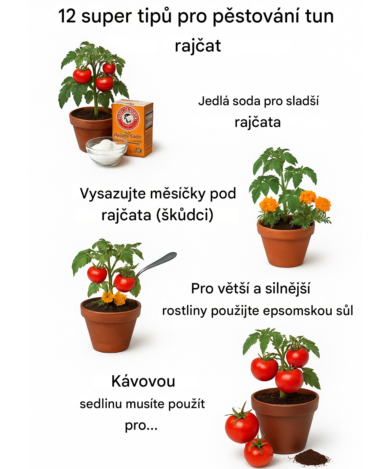 Epsomská sůl obsahuje hořčík, který rajčata potřebují pro zdravý růst. Vmíchejte polévkovou lžíci do půdy nebo ji rozpusťte ve vodě pro listový postřik.