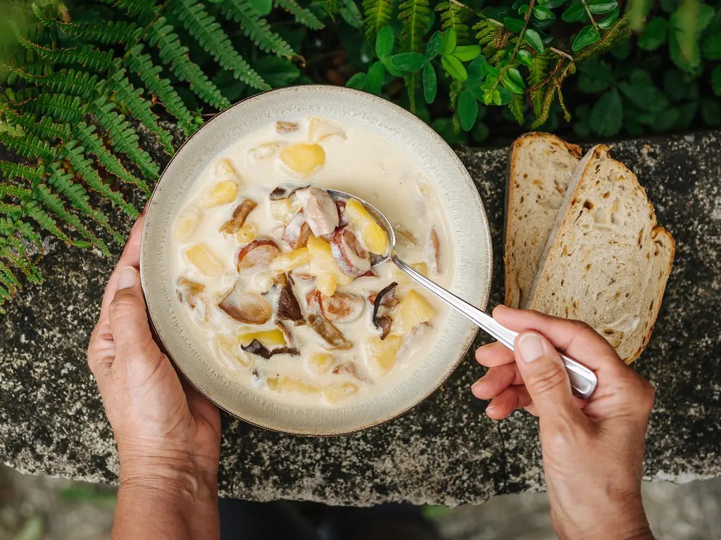 Babiččino valašské kyselo s houbami, klobásou & bramborami