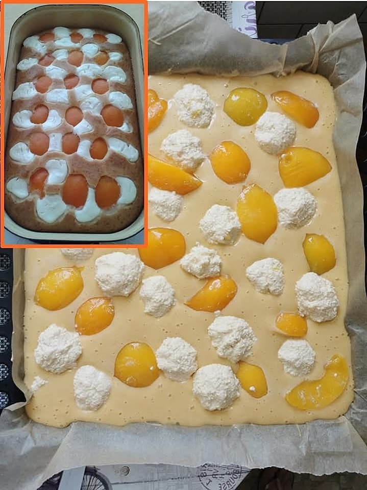 Ingredience Na drobenku: 125 g másla 1 hrnek cukru krystal 2 hrnky polohrubé mouky Na těsto: 2 vejce 3/4 hrnku mléka 1 prášek do pečiva 1 vanilkový cukr Ovoce: Kompotované broskve a višně (dle chuti) Na závěr: Tuk na vymazání Mouka na vysypání plechu Postup