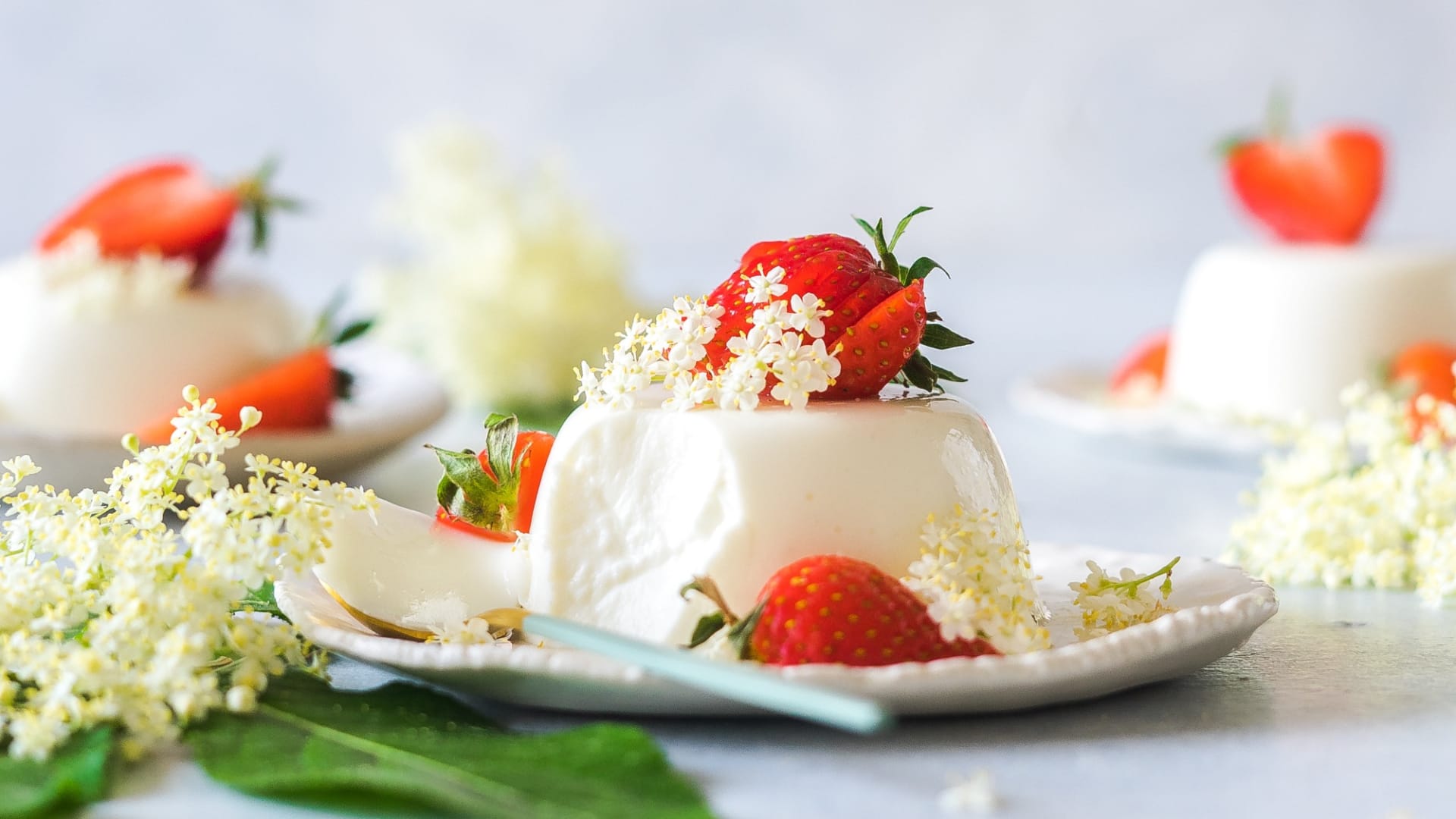 Jednoduchý italský dezert, který byste měli alespoň jednou za život ochutnat. Může být krásně sezoní právě díky bezu. Ten dodá panna cottě příjemnou květinovou vůni a chuť. Suroviny smetana na vaření 500 ml černý bez 4 větší květenství cukr 70 g agar 5 g olej jahody (na ozdobu) Postup přípravy: