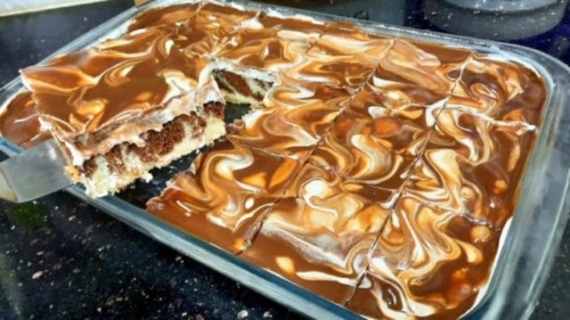 Dvoubarevný metrový koláč s vanilkovým krémem a rumovou vůní