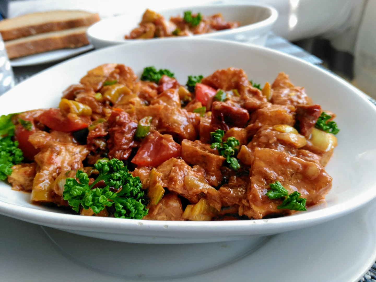 Suroviny 500 g kuřecích řízků 1 konzerva rajčat 1 konzerva kukuřice 2 jarní cibulky 2 stroužky česneku oregano nebo provensálské koření sůl pepř 1 špetka chilli olej Postup přípravy