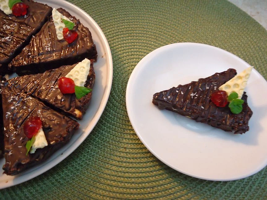 Suroviny 2 balíčky kakaových věnečků Opavia 200 g kvalitní hořké čokolády 1-2 čtverečky chilli čokolády 50 g másla 150 ml smetany ke šlehání 3 lžíce sekaných mandlí (lískových ořechů) volitelné kandované ovoce čokoládová poleva na dokončení Postup přípravy