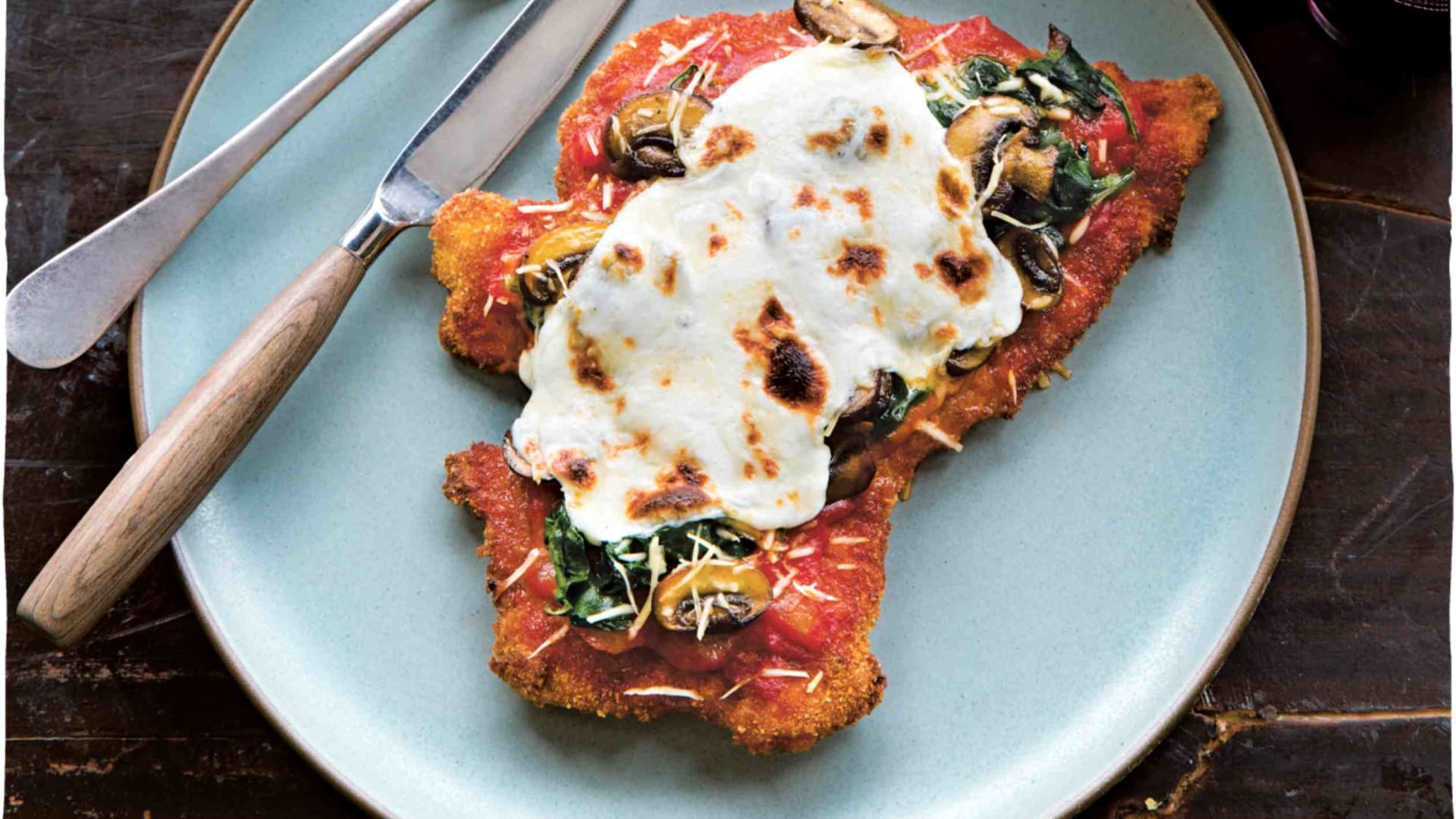 Řízky s omáčkou? Navíc ještě zapečené? Seznamte se s oblíbeným italským pokrmem – křupavý plátek se silnou rajčatovou omáčkou marinara vás potěší při nedělním obědě, po náročném dni v práci či ve škole i pořádném výletu. V této verzi (ne)známou dvojku doplňují krémové žampiony, restovaný špenát a lahodná mozzarella a vytvoří vám na talíři italskou vlajku i s přilehlými ostrovy.
