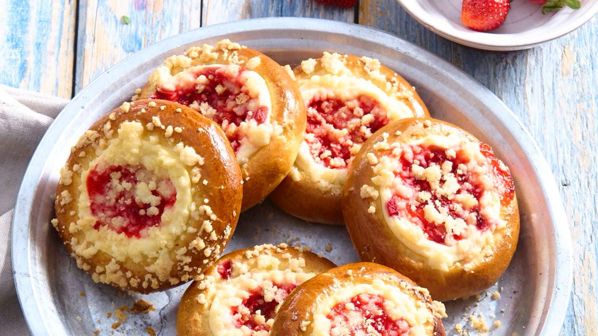 Kynuté koláče s tvarohovou náplní a jahodami – nadýchaný moučník jako od babičky