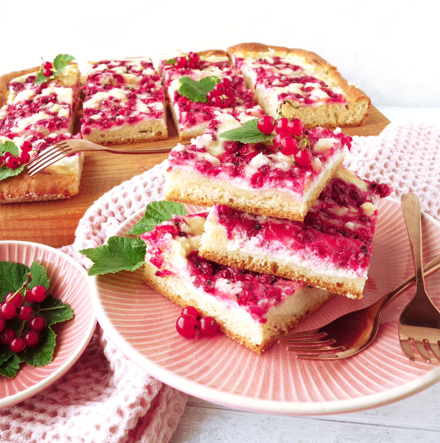 Kynutý koláč s tvarohem, ovocem a drobenkou