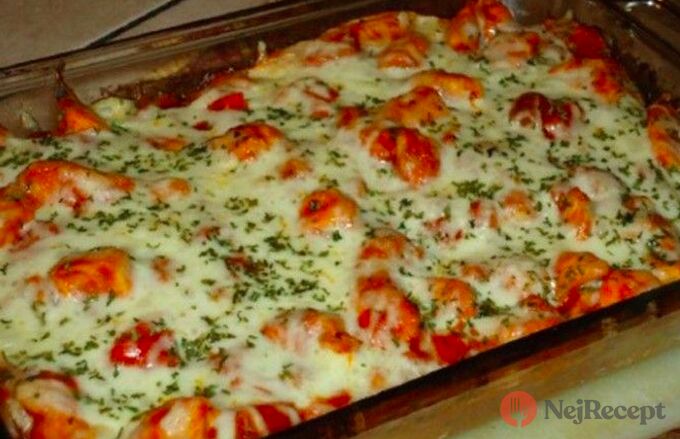 Ten, kdo má rád pikantní jídlo si určitě pochutná na zapékané kuřecí dobrotě. Kuřecí prsa zapečená v rajčatové omáčce s pálivou paprikou, … Z předešlého pečení mi zůstala rajčatová omáčka, kterou jsem používala jako základ na pizzu, tak teď jsem si vymyslela omáčku na kuřecí prsa. Samozřejmě tortillu můžete zaměnit například za starší pečivo nebo za jiné krekry. Moje mamka tortilu zaměnila za brambory, které nakrájela na tenká kolečka a i tato varianta byla senzační.