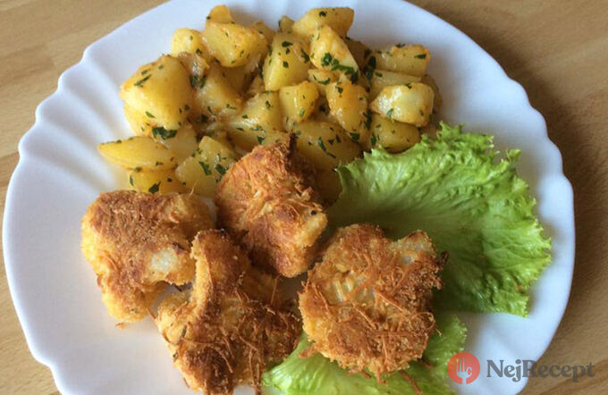 Suroviny Na těstíčko: 2 ks vejce 80 g hladké mouky 50 g škrobové moučky 100 ml mléka 30 g parmazánu špetka muškátového květu špetka soli Další suroviny: 1 ks květák dle potřeby olej na smažení Postup receptu