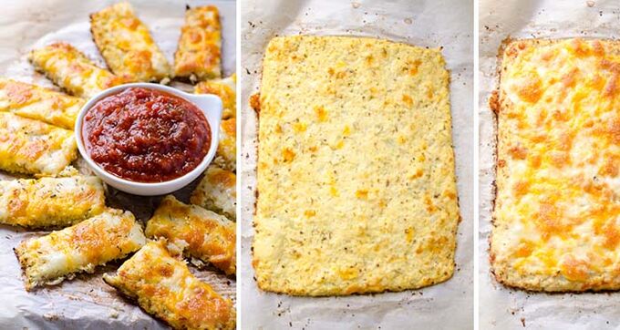 Suroviny 1 ks květák (velikost cca 20 cm) 1/4 šálku vaječné bílky (cca 2 ks bílky) 1/2 šálku + 3/4 šálku (na vrch) nastrouhaná mozzarella 1 lžíce bylinek – pizza koření, oregano nebo bazalka špetka černého pepře špetka soli omáčka podle chuti Postup receptu