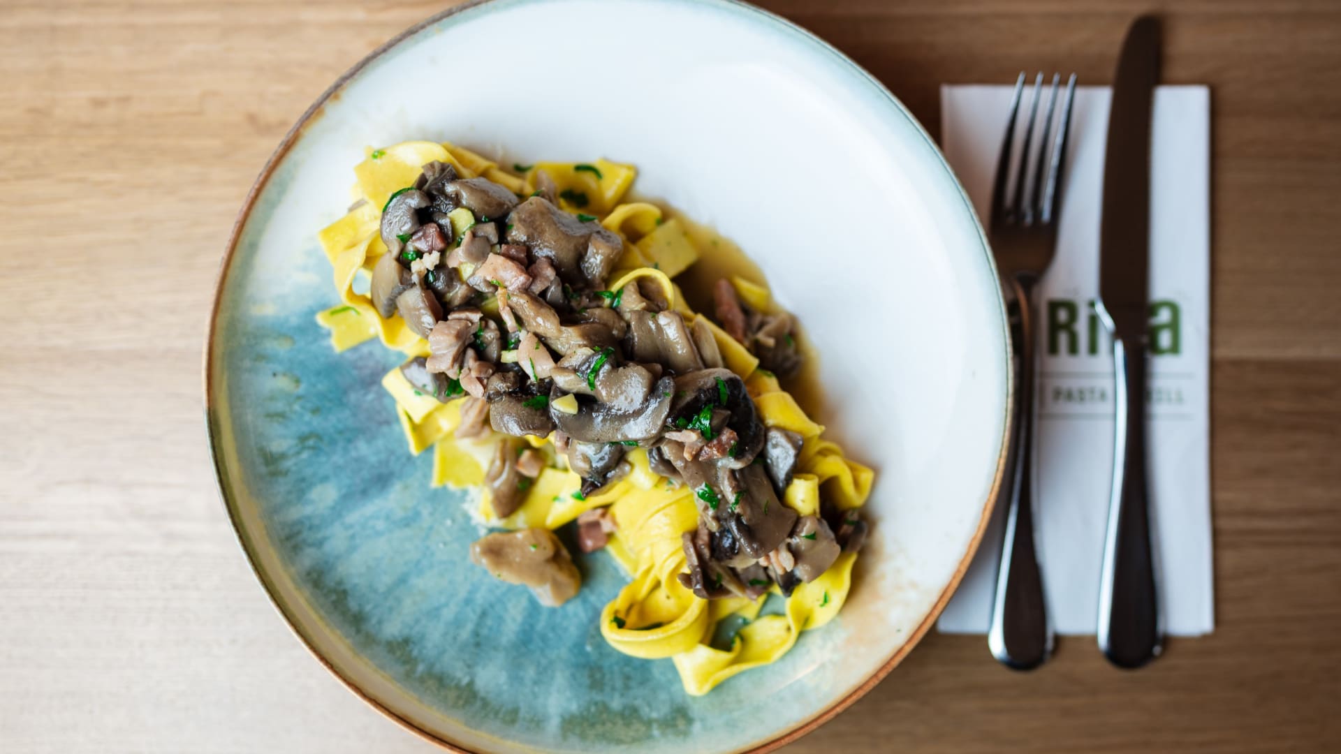 Tento jednoduchý, ale výrazně aromatický pokrm spojuje široké pappardelle s delikátním prosciuttem, voňavými hříbky a máslovou omáčkou s nádechem rozmarýnu. Klíčem k dokonalé chuti je nechat máslo na pánvi zhnědnout, aby získalo jemnou oříškovou vůni, a použít kvalitní prosciutto, které se krásně propojí s houbami a vytvoří harmonickou chuťovou kombinaci.