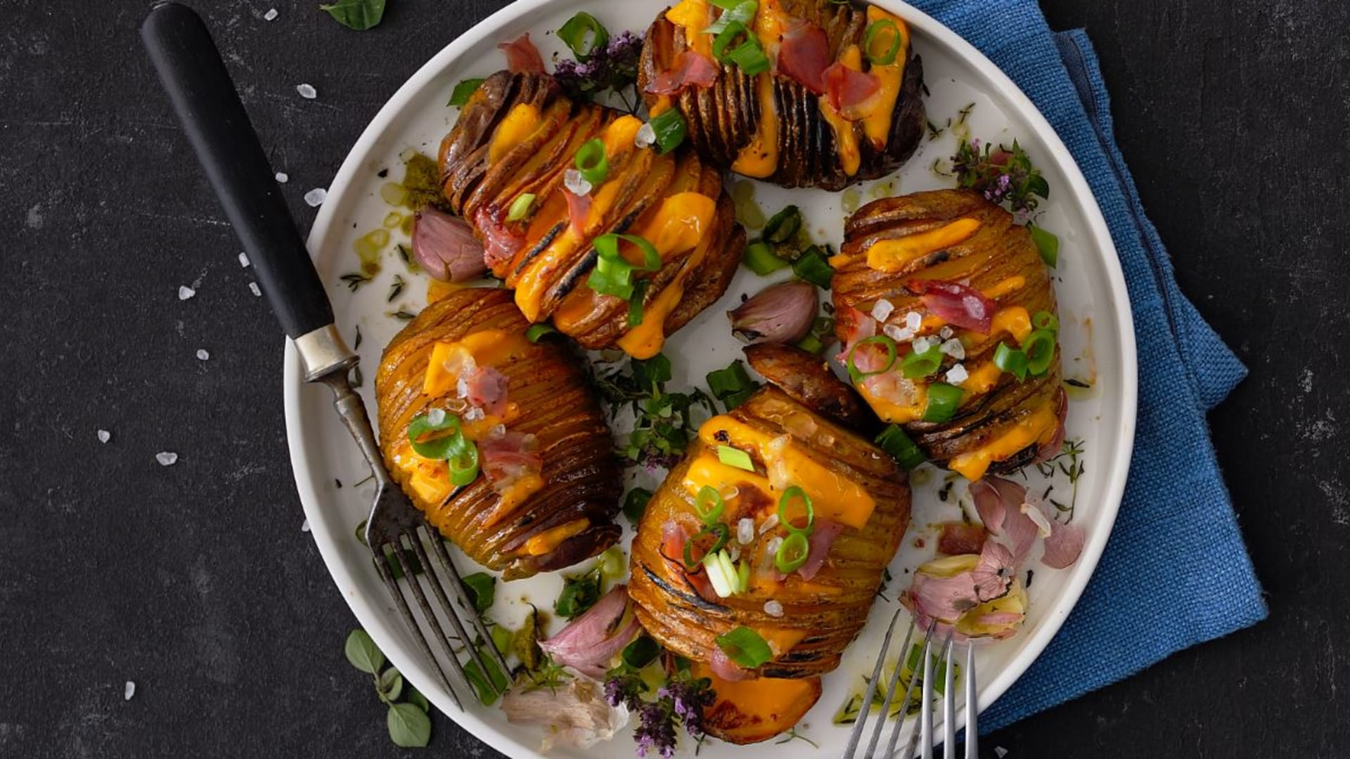 Tady se spojily dva proudy – vtipné „proužkované“ pečené brambory, pojmenované podle jedné skandinávské restaurace, kde je poprvé takto připravili, a skromné britské pečené brambory s náplní ze slaniny a sýra. Z přílohy tak vzniklo celé jídlo a z hospodské klasiky se stal domácí miláček.