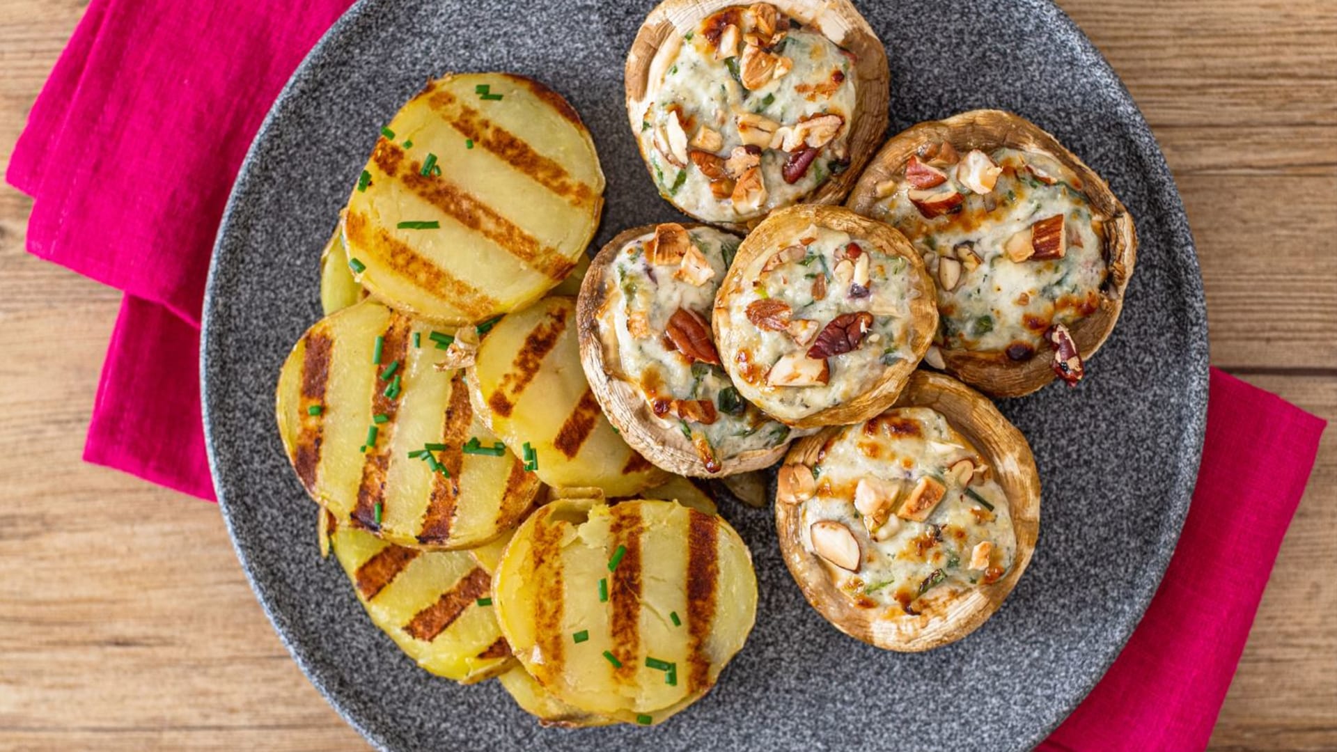 Žampiony jsou velmi vděčnou ingrediencí, co se grilování, ale i pečení týká. Dají se naplnit nepřeberným množstvím dobrot – sýrem, masem, zeleninou či čímkoli jiným. Ovšem nic nenahradí, když se do žampionu zakousnete a ucítíte v něm nějaký dobrý rozpuštěný sýr… A přesně takové budou tyto žampiony s nivou a špenátem.