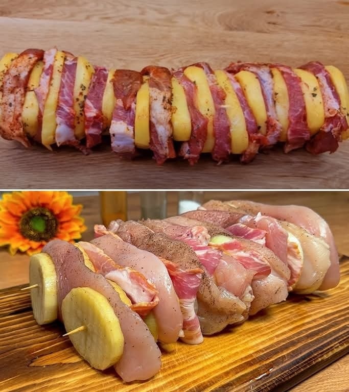Turecké špízy s bramborami a slaninou