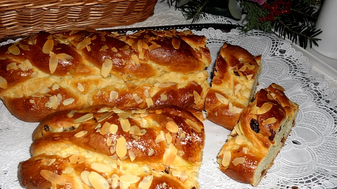 Univerzální kynuté těsto využijete minimálně dvakrát do roka. Na vánočku a na mazanec. V obou případech se s upečeným sladkým dílem můžete podělit okolím, jelikož z dávky vyjdou dva statné kusy. Samozřejmě ořechy a rozinky uvnitř nesmí chybět.