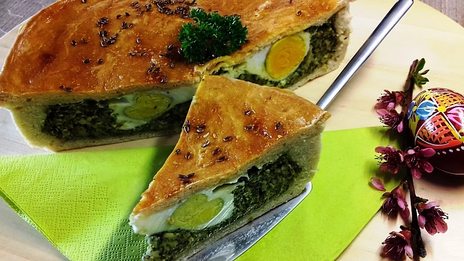 Velikonoční špenátový koláč s vejci je tradiční pokrm, který spojuje čerstvé přísady se symbolikou Velikonoc. Tento lahodný koláč přináší překvapení ve formě skrytých vajec, která symbolizují obnovení života. Koláč je velmi chutný teplý i studený.