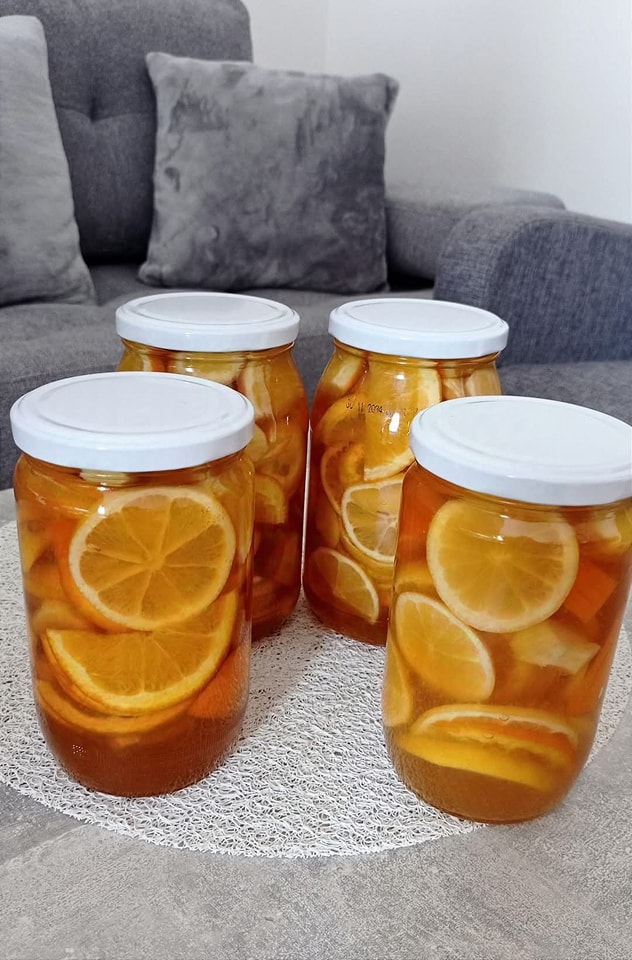 Citrón a pomeranč opláchněte důkladně a nakrájejte na kolečka.